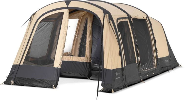 De Bardani AirSpace 310 TC opblaasbare tent is een rechtwandige tent met extra veel ruimte, geschikt voor maximaal vier personen. Deze Bardani opblaasbare tent is zeer snel op te zetten door middel van een opblaasbaar systeem met luchtbuizen.MaterialenDe buitentent is gemaakt van ademend technisch katoen en de binnentent van normaal technisch katoen. De tent is voorzien van een Oxford polyester (kuip)grondzeil en extra zware 10 mm ritsen. De tenthoeken zijn voorzien van stevige spanbanden en de quick fix reflecterende scheerlijnen zijn voorzien van alu stoppers.VentilatieDe tent is uitgerust met een permanent “Air Vent” ventilatiesysteem aan de achterkant voor een goede ventilatie. Daarnaast is er een regelbaar Groud Air Control System aanwezig.IndelingDe oppomptent is voorzien van een royale luifel aan de voorzijde met een combiwand en wegrolbare zijdeuren inclusief horramen. De leefruimte van de tent heeft een zij-ingang en de deur is extra breed. De twee slaapcabines zijn extra groot met een lengte van 230 cm. Naast dit formaat zullen de donkere binnententen zorgen voor nog meer slaapcomfort.