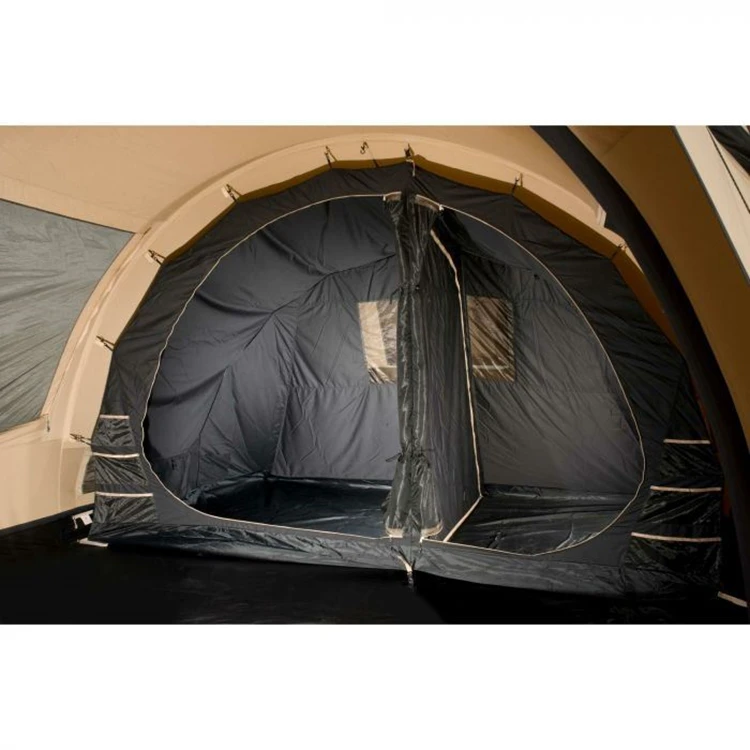 De tunneltent is uitgerust met twee slaapcabines die geschikt zijn voor twee en drie personen. Deze slaapcabines zijn extra donker en hebben een lengte van 230 cm. De wegritsbare scheidingswand zorgt voor een flexibele indeling van deze slaapcabines.
