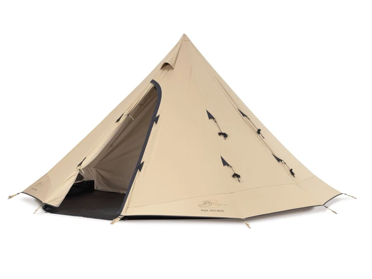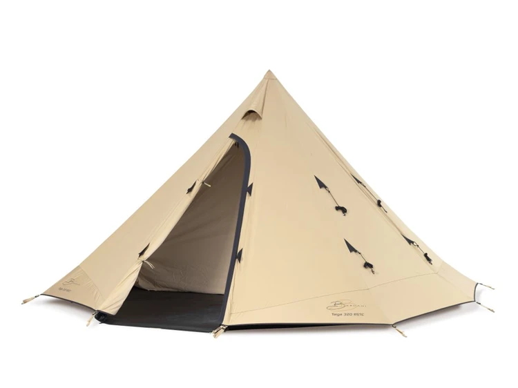 De Bardani Taiga 320 RSTC is een sportieve lichtgewicht piramidetent. Deze tent is geschikt voor twee tot vier personen en heeft een stahoogte. De tent is makkelijk en snel op te zetten omdat hij maar één stalen middenstok heeft. Het is een licht pakket om mee te nemen. Aan de achterkant en zijkanten zijn er permanente ventilatiesystemen en er is nokventilatie. Waardoor de tent goed ventileert. Je kan de ruimte naar wens opsplitsen door de scheidingswand in het midden. De Bardani Taiga 320 RSTC tipitent is gemaakt van sterke materialen en daarom een duurzame tent met een simpel ontwerp. De tent wordt geleverd met reflecterende scheerlijnen, haringen en een draagtas.
