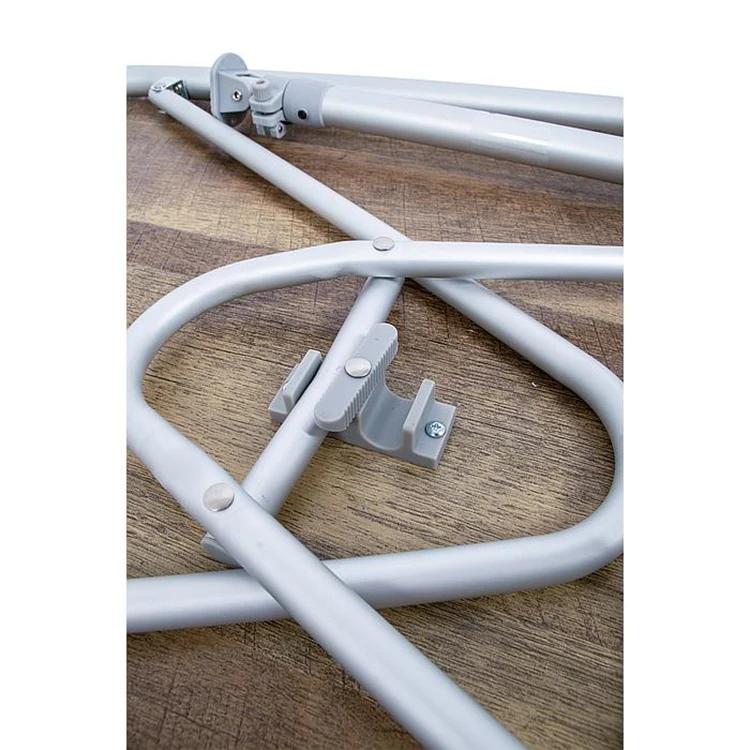 Een lichtgewicht maar zeer stabiele campingtafel. De tafel heeft een glasfiber top met kunststof rand welke hittebestendig en watervast is. Tevens heeft het tafelblad een zeer stijlvolle houtlook. Het frame is van aluminium en de campingtafel is voorzien van voetjes met stabilisatoren zodat de tafel op iedere ondergrond stevig staat. Tevens zijn de poten in hoogte te verstellen (traploos).