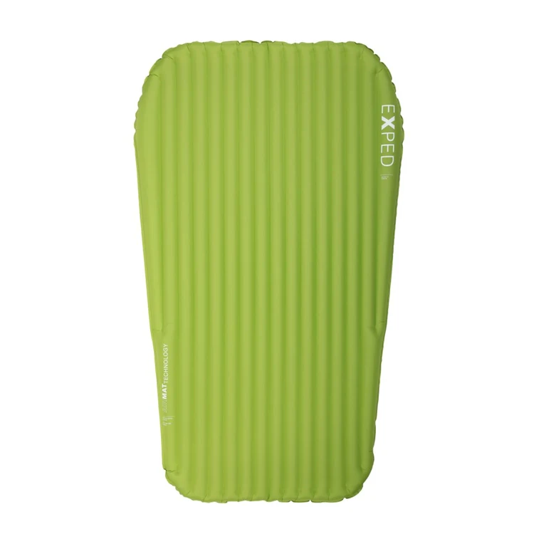 Voor elke avonturier die zo veel mogelijk gewicht wil besparen is er de Ultra serie van Exped.De Ultra 1R Duo is een ultra lichtgewicht zomerse slaapmat.De mat is gemaakt van gerecycled polyester. Ook wordt de volledige CO2 uitstoot van de productie, inclusief het transport, gecompenseerd door de samenwerking met MyClimate. De mat bestaat uit verticale banen. De twee buitenste banen zijn iets hoger waardoor je stabiel ligt en niet van je mat rolt. Om er voor te zorgen dat allebei de slapers comfortabel liggen bestaat de Ultra 3R Duo uit twee aparte compartimenten.Zo wordt wiebelen voorkomen.Allebei de compartimenten zijn voorzien van twee platte ventielen. Zo kan het tentdoek niet beschadigen. Het ene ventiel is voor opblazen en de andere voor het laten leeglopen van de mat. Het opblaasventiel is voorzien van een handig terugslagklepje waardoor de lucht er niet uit kan lopen tijdens het opblazen.De mat wordt geleverd inclusief een Exped Schnozzel Pumpbag. Met deze lichtgewicht pompzak blaas je de mat razendsnel op. Ook voorkom je dat er vocht binnenin de mat komt. De pompzak is tevens te gebruiken als waterdichte opbergfoedraal.Voor fietsers en rugzaklopers die zich niet willen laten beperken door gewicht en pakvolume is er de Ultra serie van Exped.