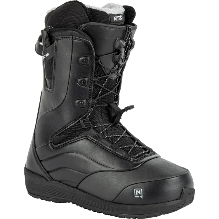 De onlangs verbeterde Crown snowboardschoen voor dames is nu nog duurzamer met de toevoeging van een nieuwe buitenzool en Rupper Impact Panels voor een duurzame grip bij een minimaal gewicht. Comfort is cruciaal, en de Women’s Cloud 6 Liner en Women’s Solo Ortholite® Footbed zorgen voor de pro-level pasvorm en respons die je wilt met het comfort waar je van droomt. De Re/Lace Liner Locker functie zorgt voor moeiteloze aanpassing op de piste op elk moment. Tegelijkertijd zorgt de 45° Laceglider van het TLS zonale vetersysteem voor een soepele en snelle lace-up oplossing. Dus doe jezelf een plezier en upgrade je comfort dit seizoen met de Nitro Crown snowboardschoen voor dames.