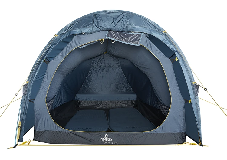 Ga kamperen in de Chara 2 en voel je tuis in de buitenlucht, dit super licht gewicht 2 persoons tunneltent is gemakkelijk op te zetten en vol met opbergruimte for je bagage. De voor en achterkant van de Flysheet kunnen worden opgerold voor betere ventilatie in warm of klam weer. Gebouwd om verder te kunnen met comfort.
