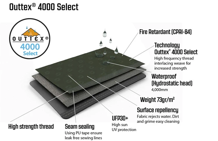 | Materiaal buitendoek | OuttexĀ® 4000 Select, 100% Polyester |