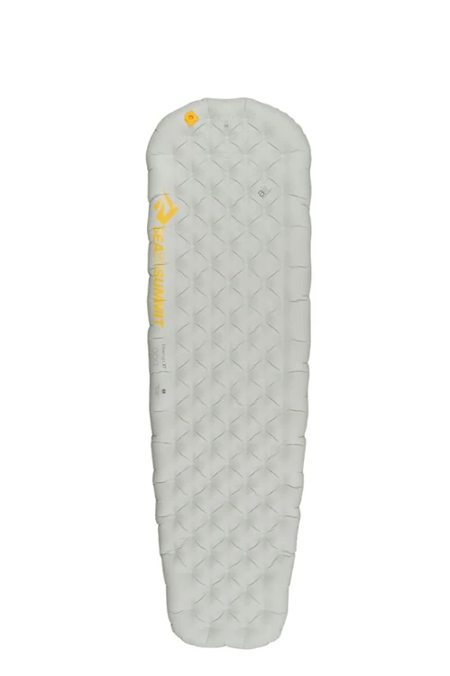 De Air Sprung Cells van deze 10cm dikke opblaasbare slaapmat werken hetzelfde als een pocket matras. De zeer comfortabele slaapmat is de lichtste verkrijgbaar met een dikte van 10cm. Iedere Air Sprung Cell kan onafhankelijk naar de vorm van je lichaam veranderen, waardoor het zachter en veel comfortabeler aanvoelt en de druk veel beter kan worden verdeeld. In tegenstelling tot de gewone tussenschotconstructie, zijn Sea to Summit Ether Light slaapmatten gemaakt door gebruikmaking van een punt-las patroon om een groot oppervlak te creëren van luchtcellen die met elkaar in verbinding staan. Hierdoor zijn er minder puntlassen noodzakelijk dat resulteert in minder materiaal en grotere luchtkamers. De lus technologie in de puntlassen geeft meer ruimte in de boven en onderzijde waardoor er dikkere en comfortabele slaapmatten gemaakt kunnen worden. Voor het opblazen en laten leeglopen heeft Sea to Summit een multifunctioneel ventiel ontwikkeld. Het geïntegreerde ventiel maakt een inlaatopening dat luchtuitstroom voorkomt voordat je het ventiel afsluit. Tevens heeft het ventiel een fijne afstelmogelijkheid om de juiste hoeveelheid lucht te regelen dat voor jou comfortabel is. Wanneer dit universele ventiel los wordt getrokken loopt de slaapmat binnen enkele seconden leeg. De Air Sprung Cell slaapmatten worden inclusief Airstream Pumpsack geleverd. Buiten het gemakkelijk en snel oppompen van uw slaapmat is de Airstream Pumpsack tevens de bewaarzak. Haal de slaapmat uit de hoes en gebruik dezelfde hoes voor het oppompen! Producteigenschappen Extra Thick (XT) = Extra dik door lus puntlassen. Lichter, stiller en een stroever 30/40D Nylon stof. Interne behandeling om schimmel te voorkomen. Air Spung technology voor comfort. Inclusief PillowLock om verschuiven van het kussen tegen te gaan. De Sea to Summit Ether Light XT slaapmatten zijn verkrijgbaar in verschillende maten en zonder en met isolatie. De Etherlight Insulated matten zijn uitgevoerd met een Thermolite isolatie laag. Thermolite isolatie is ontwikkeld voor ultiem gebruik en is gemaakt van speciaal ontwikkelde vezels om een hoge CLO waarde te creëren met een zeer laag gewicht. Thermolite HL 1 is een opblaasbare isolatie met een fiberfill constructie. Deze is gemaakt van een unieke 3D holle kern en massieve kern vezelvulling welke lichtgewicht, extra warm en degelijk zijn. De Thermolite insulations blaast zich op binnenin de Air Sprung Cells om warmteverlies tegen te gaan van de koude ondergrond.