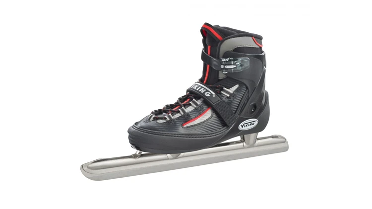 Een lage schaats, welke is afgewerkt met een zwarte poedercoating.